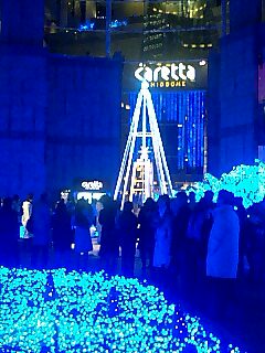 汐留12月15日汐留のイルミネーションを見に行った。 新橋駅から5分ほど歩いて日テレなどのあるビルに着くと 天気予報の中継の準備をしているようだった。 テレビで見たことのある気象予報士の人もいた。 イルミネーションがある場所を探してうろうろしてようやくそれらしい 場所を見つけた。 ちょうど演出が始まる時間になり、雅楽と海をイメージしたイルミネーション を融合した演出を見ることができた。 お腹がすいたので食べる店を探したけど適当な店がなかなか見つからず またかなりうろうろしてしまった。 ようやく安めのパスタバーのような店を見つけて入った。 パスタとピザ、それにディダオレンジとかいうお酒を頼んだけど どれも美味しかった。 その後、ゆりかもめでお台場へも行くことにした。 お台場のクリスマスツリーも見て、つぶつぶのアイスを始めて食べた。 |