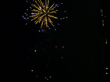 中山競馬場花火8月5日千葉のじゃんぱらでデジカメと、薄型のDVDマルチドライブを売った後、 前日も花火に行ったのでどうしようかと思ったけど、毎年行っている中山競馬場の 花火へやっぱり行くことにした。 船橋法典で電車を降り地下通路を通って競馬場まで歩き、空いている場所を探したけど なかなか見つからない。 本当に狭い隙間になんとか場所を取った。 建物の中でウィンナーと焼きそばを買い、連れと落ち合ってシートに戻った。 やがてアナウンスの後、音楽に合わせて花火が始まった。 席は端のほうかと思ったけど実は正面で、すごくよく見えた。 ここの花火は、いろいろなコンセプトで花火が上がり飽きさせない。 終わった後、マツキヨでアイスを買い近くの公園で食べて帰った。 |