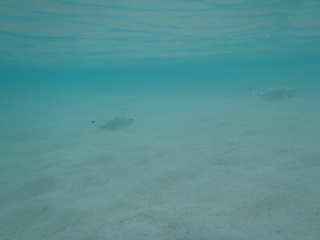 土砂降りのはての浜10月5日予約していたはての浜ツアーが悪天候で中止になったので、ネットで探して融通が利きそうな はての浜観光サービスに電話するとやっているということなので行くことにした。 真泊港辺りから電話したのだけれど、わざわざ迎えにきてくれた。 半日のツアーで本来は弁当は付かないのだけれど、余っていたのか付けてくれた。 合羽と、荷物を入れるためのビニール袋、救命胴衣を渡され船に乗り込み、出発した。 結構なスピードで船を飛ばし、途中リンゼイ殺害の市橋が潜伏していたという建物を見て、 はての浜に到着した。 この時は曇り空くらいで、日除けのテントを建てて、軽くシュノーケリングをした。 海に入ると足下に20センチくらいの白い魚が群れていて、逃げようともしない。 その先の珊瑚のある辺りを水中めがねで覗くと、小さな魚たちが泳いでいた。 テントに戻り弁当を食べる頃には雨が降り出してきた。 雨はだんだんと強くなり、すぐに土砂降りになった。テントの中にも水が入ってくるので 荷物をビニール袋にいれ、濡れるのを防いだ。 雨の中、はての浜を散策してみると意外と広く、きれいな貝殻がたくさん落ちていたので、 気に入ったものを探して拾い集めたり写真を撮ったりした。 高校生の団体が渡ってきたけど、その頃には本格的に土砂降りになってきて、高校生たちは 土砂降りの中でシュノーケリングやったりバナナボートに乗ったりしていた。 4時に戻る予定だったけど3時頃に迎えにきて周りが見えないほどの雨の中でテントを畳み ずぶぬれになって船に乗り込んだ。 帰りの船もすごいスピードで飛ばしたので雨が素肌に当たり痛かった。 久米島に着く頃には雨がやみ、レンタカーでホテルに戻ったけど、雨に打たれたせいか、 くたくたに疲れていて、シャワーを浴びてしばらく休んだ。 夕食を食べるために再びレンタカーでイーフビーチのほうへ出かけ、ソーキ、車エビ、海ぶどう丼なんかを注文して食べた。 |