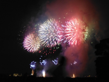 江戸川花火8月4日4時前から花火を見るために家を出た。 電車で市川駅まで行き、駅ビルのスーパーでネギトロ巻、いなり寿司、ポテトチップス、500円で詰め放題のエビの空揚げや短いソーセージのセット、端麗の6本セット等を買い込み河原の方へ歩いて行った。 2年ぶりの開催のせいか人出が多く警官も大勢出動していた。 河原で適当な場所にシートを敷き、花火が始まるまで買った食べ物を食べながらのんびりと待った。 徐々に日が暮れ7時半ころから花火が始まった。 あまり暑くもなく、天気もよかったので快適に花火を楽しむことができた。 連れは途中で寝てしまったので、クライマックスには起こして一緒に見た。 帰りは、本八幡まで結構長い距離を歩き、サイゼリアでアイスとドリンクバーを注文し一休みして帰った。 |