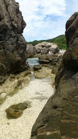 隠れビーチ9月6日4日目 朝食の後、レンタカーであはれんの近くの展望台へ行った。 展望台から見るとあはれんビーチの反対側にも真っ白な砂浜がある 。 展望台を降りると来た道とは別に海の方へ延びる細道があったので行ってみると、海岸の岩場に出た。 岩場にはフナムシやハゼの仲間がいっぱいいて、自然そのもの。 海岸沿いに岩場を歩いてさっき見た砂浜に出た砂浜には先客が一人だけいたが私たちが来ると帰って行った。 浜で何枚も写真を撮り。先客が帰った道へ行ってみると来た道に出たのでレンタカーに戻りホテルに戻った。 |