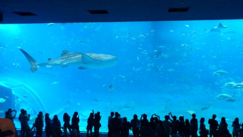 ちゅら海水族館9月7日ホテルのバイキングで朝食を済ませ、レンタカーで出発。 ヤンバルのハイキングとちゅら海水族館に行くつもりだったけど、しばらく走ってみてあまりに遠そうだったので、ヤンバルは止めることにした。 とちゅうのマックスバリューで島草履を探したけど黄色しかなかった。 ちゅら海水族館につくと駐車場が満車だったので少し時間をおいてから出直すことにして、適当に車を走らせ八重岳という山に行って見た。 山頂近くの東屋でタンナファクルーとお菓子を食べた。ひぐらしに似た変わったセミが鳴いていて、のんびりして気持ちがよかった。 ちゅら海水族館に戻ると今度は駐車場が空いていた。 中に入り深海魚の水槽なんかを眺めながらしばらく進むと目的の巨大水槽があった。 水槽の中でジンベイザメやマンタが泳ぐ姿はまるで映画のスクリーンを見ているようだった。 水槽のを見ながらお茶できるカフェがあったのでアイスコーヒーとアイスティーをたのんだ。 水槽の目の前の席が空いたので取ろうとしたら中年の女性と同時になってしまったので諦めようと思ったらどうぞと言ってくれたので相席で座った。 母と成人した息子のようだった。 しばらく座って水槽を眺め、マナティー館でマナティーが草を食べるのを見てちゅら海水族館を後にした。 外の琉球ガラスの店で行く前から買いたかった琉球ガラスのグラスを2つ買った。 車で南下して途中ブルーシールのアイス屋でアイスを食べて、買い物をするため高速を飛ばして那覇へ向かった。 那覇に着いてスーパーを探したけど見つからず変な細道に迷い込んでしまいすごく疲れた。 ようやくショッピングモールのようなところを見つけて入った。 島草履やおみやげを安く買うことが出来た。 恩納に戻る途中で焼肉のバイキング屋に入った。 60分で食べきれないくらい食べた。 夜遅くホテルに戻った。 |