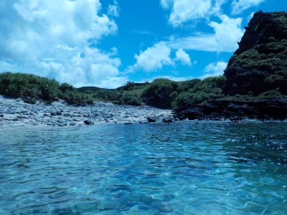 座間味旅行3日目9月24日いよいよ安室島へ行く日だ。11時過ぎに阿真漁港から予約していた船に乗り込み出発。 あげなしくがコンディションがいいと言われたが、どうしても安室島へ行きたいと言って行かせてもらった。 船を飛ばして安室島へ向かう。 途中で船長に妻と二人の写真を撮ってもらった。 西側の浜に到着すると何人か先客がいたので、丘を超えて島の東側に行きアダンの木の木陰にビーチハウスを設置した。 貸し切りのビーチでシュノーケリングしたり、散歩したりしてのんびり過ごした。 お昼代わりに前日スーパーで買っておいたさーたーあんだぎーを食べた。 途中、雨が降ってきてだんだん強くなってきたので岩の下に避難した。 やがて雨もやんで船が迎えに来る時間が近づいたので、船を降りた浜に戻った。 すぐに船が来て、乗り込み座間味島へ戻った。 帰り際に船長に台風の影響で明日夕方の高速船が欠航になりそうだと言われ、宿に戻ってすぐに他の便へ変更する電話をかけたけど、満席で変更できなかった。 突然のことで、びっくりしたけど、乗れなかったら安い宿でも探して台風が去るまで2〜3日泊まるしかないと思った。 その後、宿の人と相談して、翌日の朝にキャンセル待ちに並ぶことにした。 |