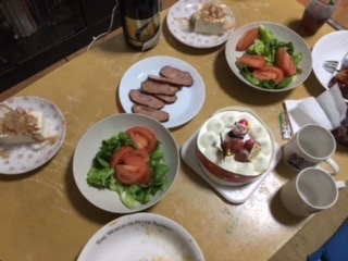 クリスマスイブ12月24日夕方出かけ船橋で妻と待ち合わせて、ユーハイムのケーキを買って、本八幡の西友に行き、チキンや寿司、シャンパンなどを買って家でクリスマスをやった。 |