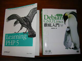 「Debian GNU/Linux 徹底入門」と「Learning PHP5」3月26日アマゾンで注文した「Debian GNU/Linux 徹底入門」と「Learning PHP5」が 届いた。「Debian GNU/Linux 徹底入門」は結構いい値段なので 本屋で見るたびに買おうかどうか迷っていたのだけど、アマゾンで5000円以上 買うと500円引きクーポンにつられて買ってしまった。今更買ってもあんまり 意味なかったかも。 「Learning PHP5」は題名の通りかなり初歩的な内容のようだ。PHPの勉強というより 英語の勉強によさそうだ。 昨日いろんなものをオークションに出したけどやっぱり17インチのモニターも 店に持って行って売ってしまおう。 有っても使い道があまりないし結構場所をとる。 2000円で買った15インチのCRTと換えてもいいけど、こっちは売れないしな... とりあえずモニタ片付けたら机の上がかなりすっきりした。 |