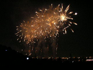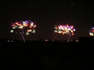 市川の花火8月5日市川の花火を見に行った。 駅に着いた途端人でごったがえしていたので、とりあえずマクドナルドに避難。 一服したあとすいている道を選んで、江戸川の堤防まで歩いた。 途中いなりずしと串団子を買っておいた。 堤防の草の上に場所をとり、ビールを買ってきて始まるまで待っていたけど、 ビールを飲み干して、食べ物もほとんど食べ終わった頃ようやく花火が始まった。 途中眠くなりながらもフィナーレまで見て、帰りも人混みを避けながら駅まで 戻ると、駅で入場制限していた。 しかたなくダイエーに入って少し時間をつぶしてから電車に乗った。 西船橋の喫茶店でアイスコーヒーとサンドイッチを注文。 終電近くで帰った。 |