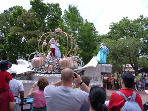 前日来たマジックキングダムのゲートの前に到着し中に入ると、日本とは違い昔のアメリカ風の落ち着いた建物が建ち並び、白馬の馬車なんかが走っている。