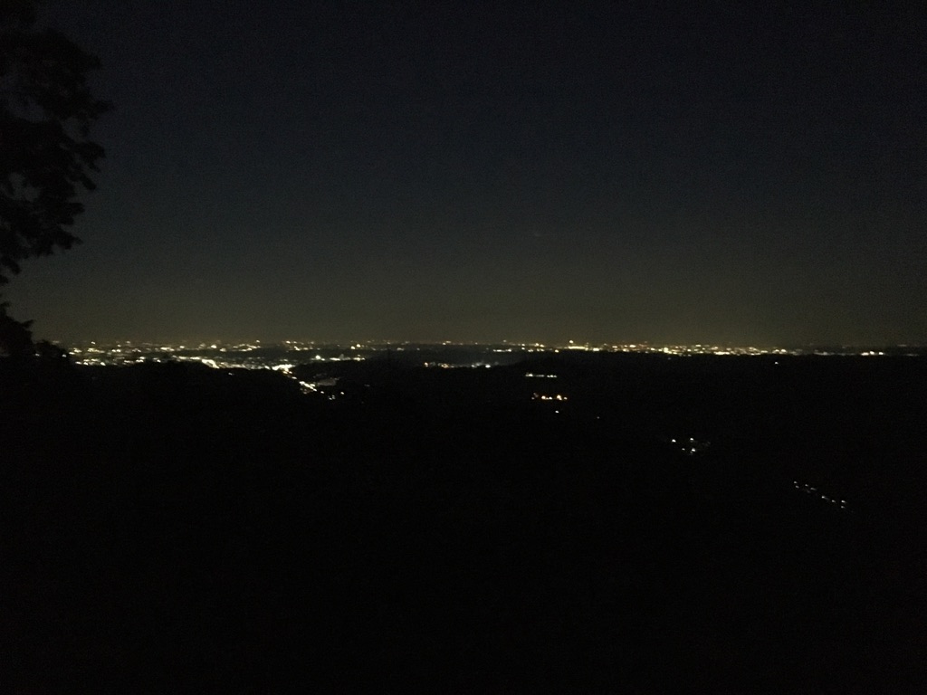 天覚山のピークに着いた時は真っ暗で夜景が綺麗に見えた。