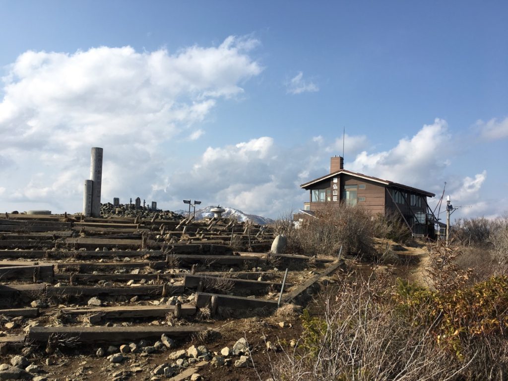 山頂では工事をしていたので少し先の階段で一服。