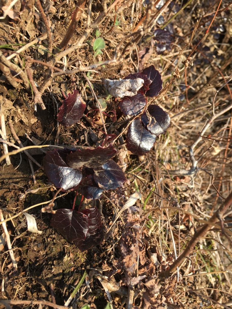去年来た時に撮影した行者ヶ岳の岩場のアカバナヒメイワカガミの葉が真っ赤になって残っている。