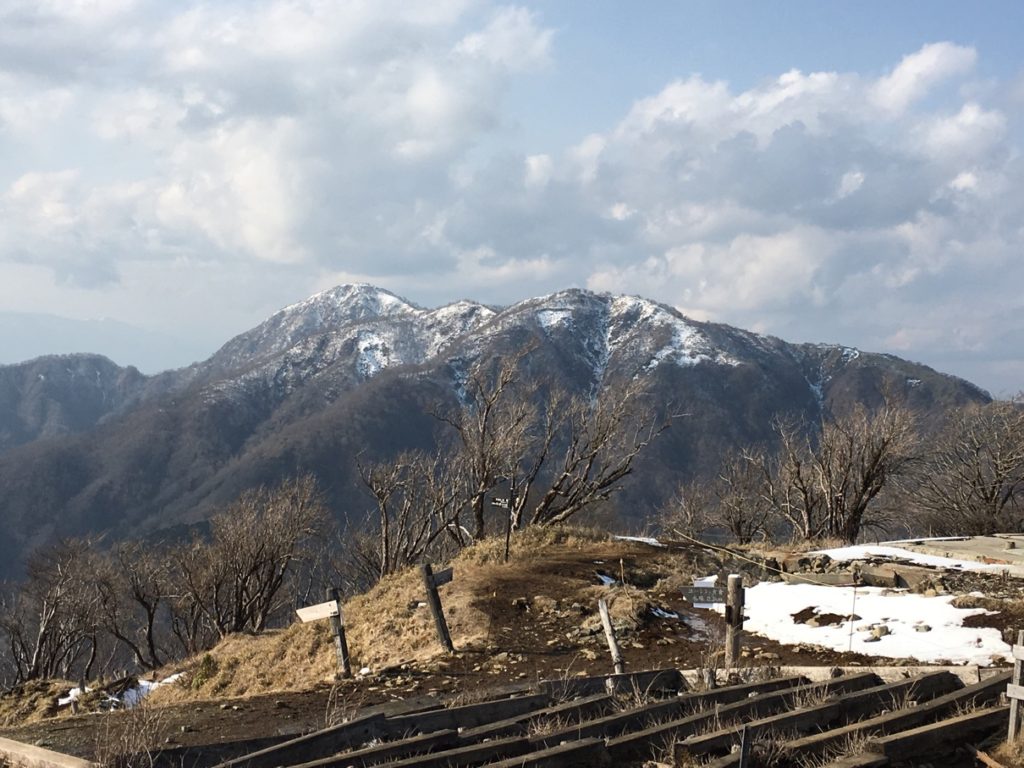 塔ノ岳の奥の山々にはまだ雪が残っている。