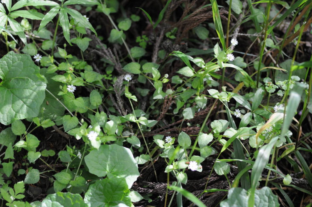 小さな白い花が咲いているが名前が出てこない。