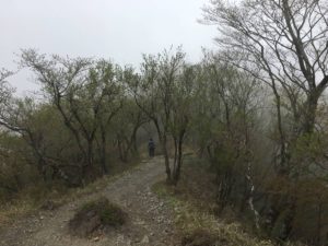 ガスも濃くなり雨こそ降らないが木の枝で結露した水かポタポタと降ってきて頭がビシャビシャになるので何度もタオルで拭いた。