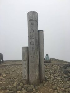 ちょうど正午頃に丹沢山に到着。ガスがかかり景色は何も見えない。