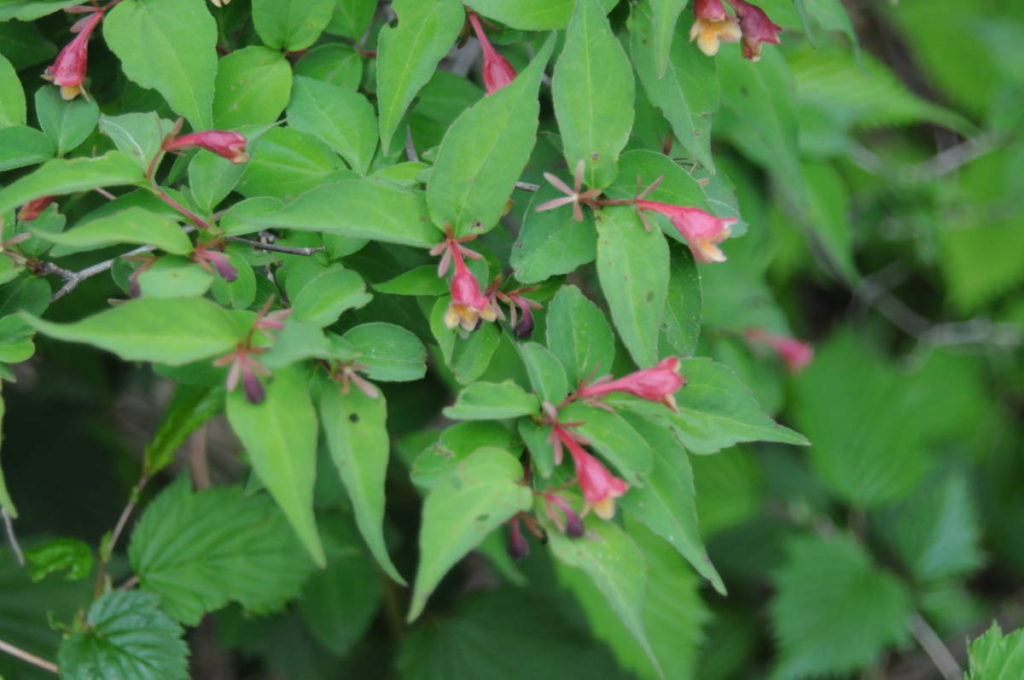 三つ峠山荘の辺りで外国人数人が平凡社のフィールド版の植物図鑑を持ってツクバネウツギの花を見ていた。こっちも便乗して撮影した。