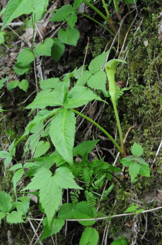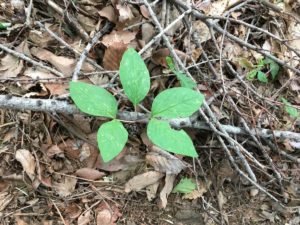 ヤマシャクヤクの葉がある。