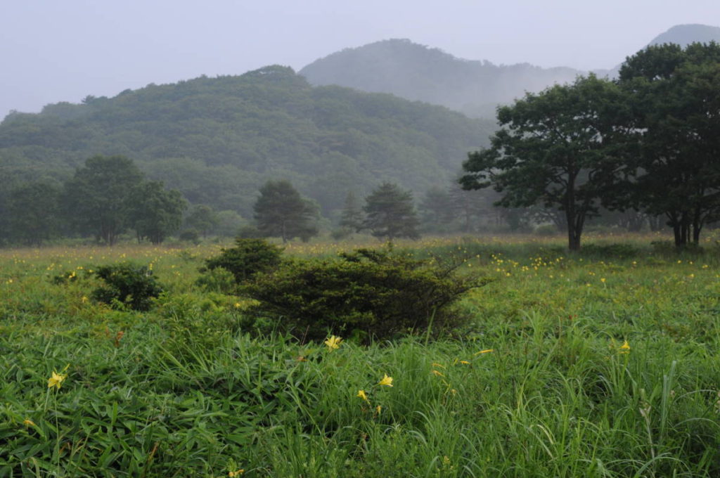 やがてユウスゲが点々と咲く広大な草原に出た。