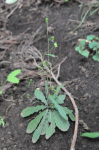 花が咲いていないので、なんだろうと思いながらとりあえず写真を撮ってふと後ろを見ると花を付けた株があった。