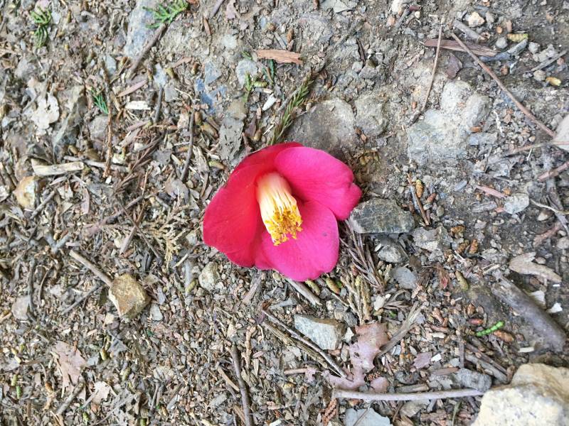 マンリョウや落ちた椿の花を撮影。