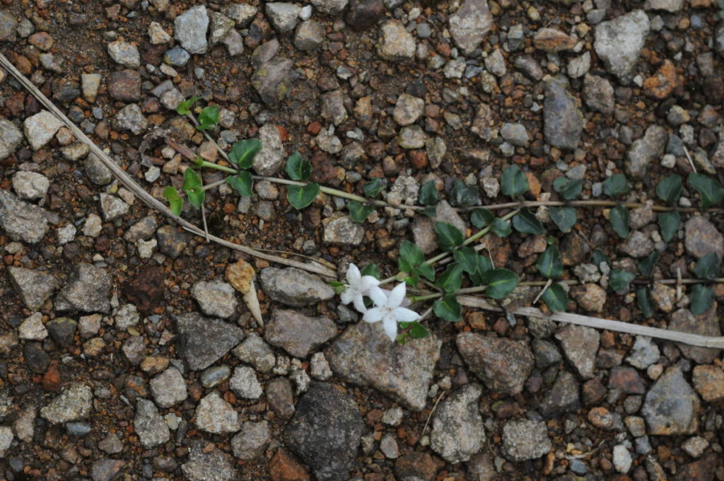 岩場の上の方に白い花が咲いていたので登って見てみるとウメバチソウだった。