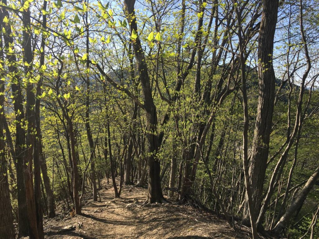 気候もよく暖かな広葉樹林の中を歩く。