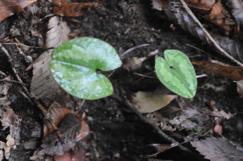葉も小さいし、この時期に咲いているのでカントウカンアオイではなさそうなのでなんとかきれいに撮影しようとがんばってみたけど暗すぎてだめだった。