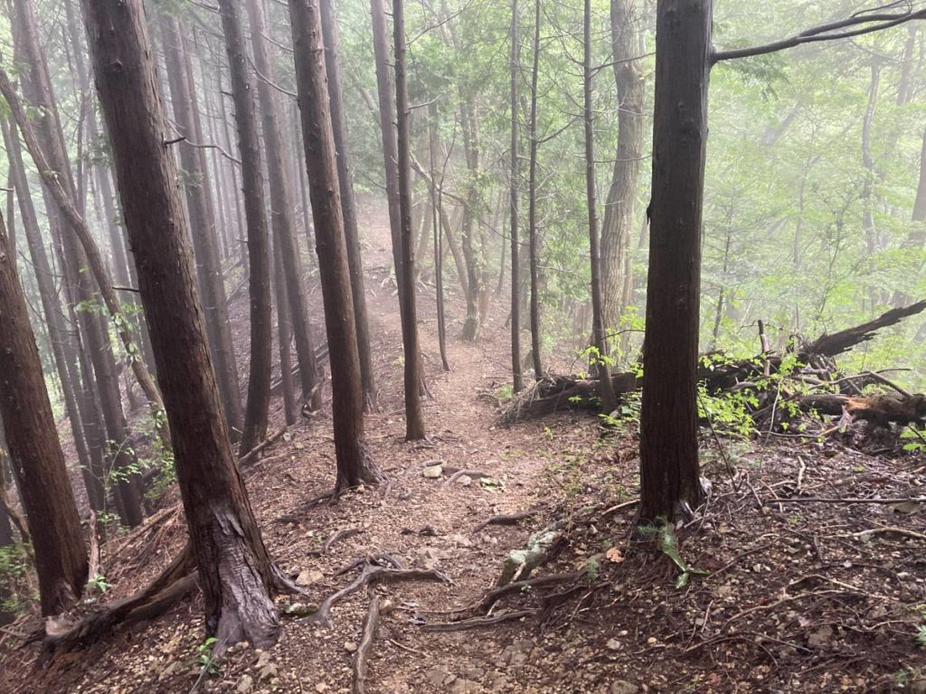 醍醐丸までの道は比較的なだらかだった。霧の中を進む。