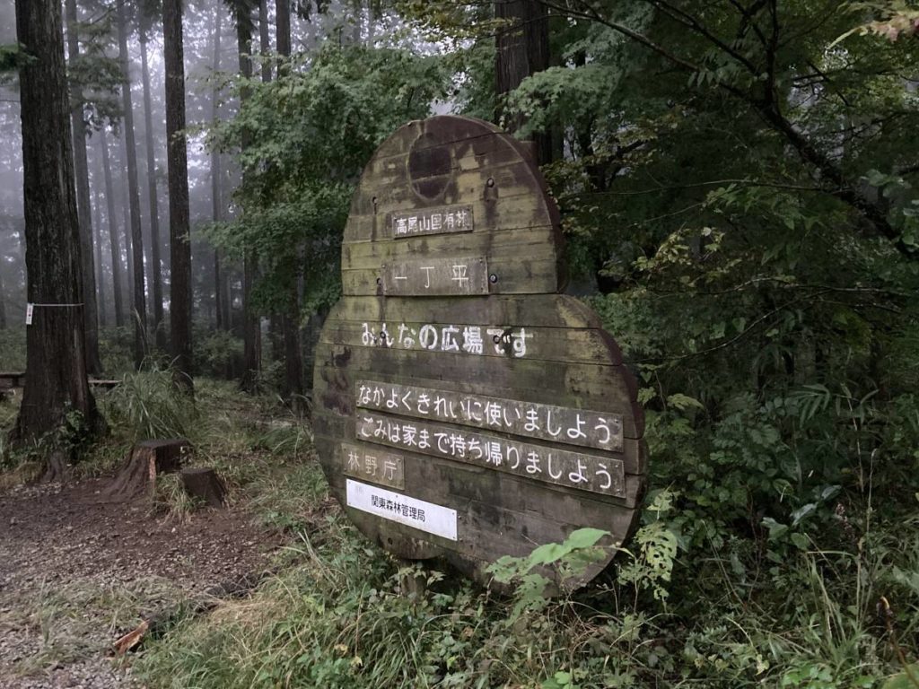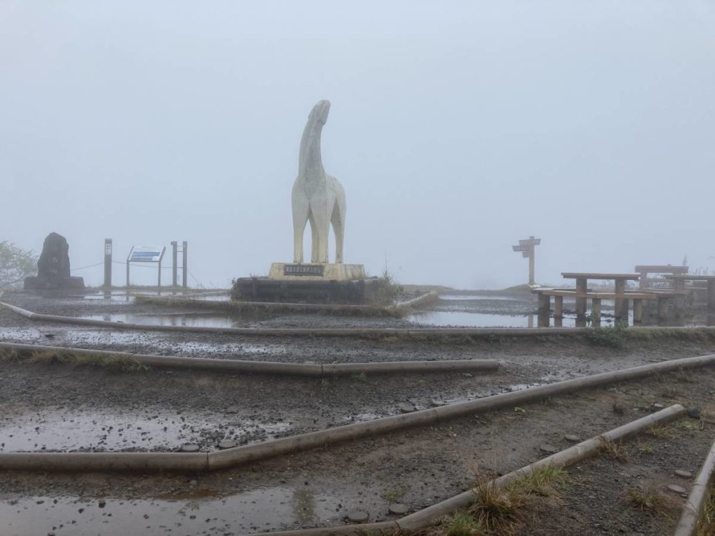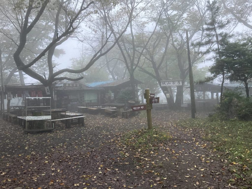 霧であまりに視界が悪いので安全な1号路で下山した。