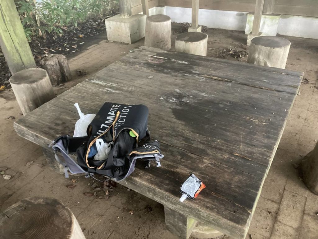 雨が強いので東屋でお昼を食べようと思ったけど他のグループがいたのでお昼は後回しにして先へ進む。