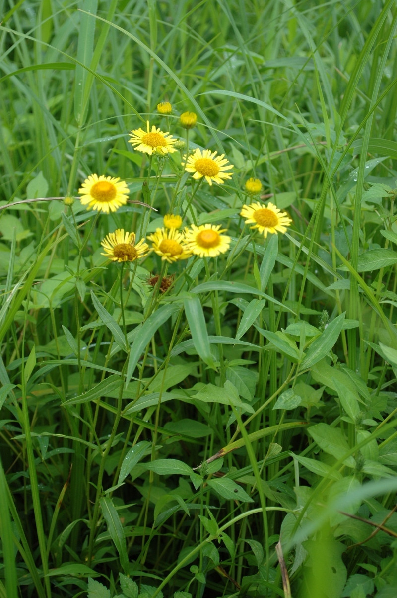 朝方降った雨で草が濡れていたので足元がびしゃびしゃになりながらも、あまり人の通らない小径を進むと黄色い菊を発見。