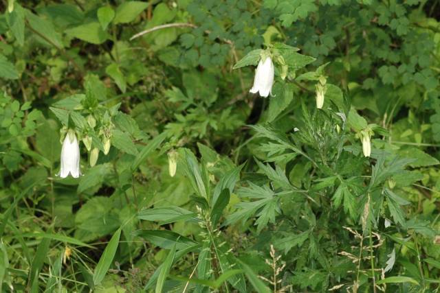 ガマズミやウツギの白い花が咲いていて、特にガマズミの花序は遠目に見るとカザグルマの大きな花のようにも見えるのでまぎらわしい。