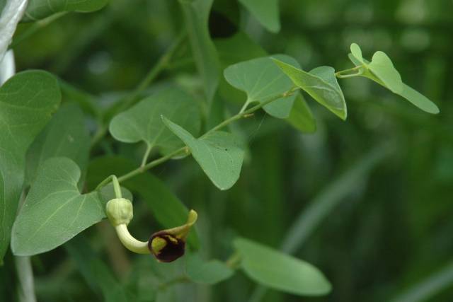 トモエソウが見えたので写真を撮ろうと近づくと、トモエソウにウマノスズクサが巻き付いていた。花も2~3個付いていたので早速撮影した。