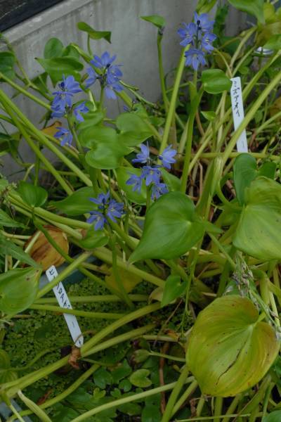 ここのプランターにミズアオイが植えてあったので撮影した。