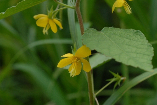 道端で見慣れない黄色い花を見つけた。100円の図鑑でカラスノゴマと判明した。
