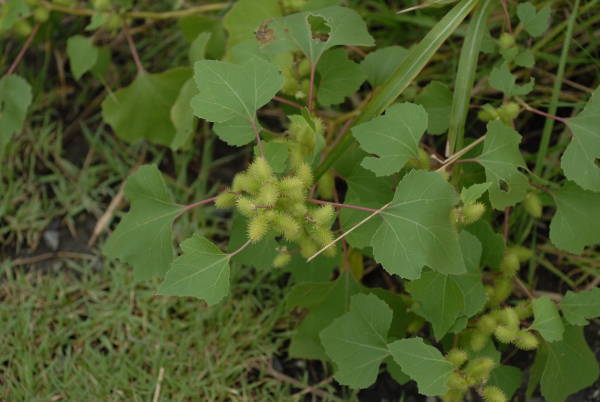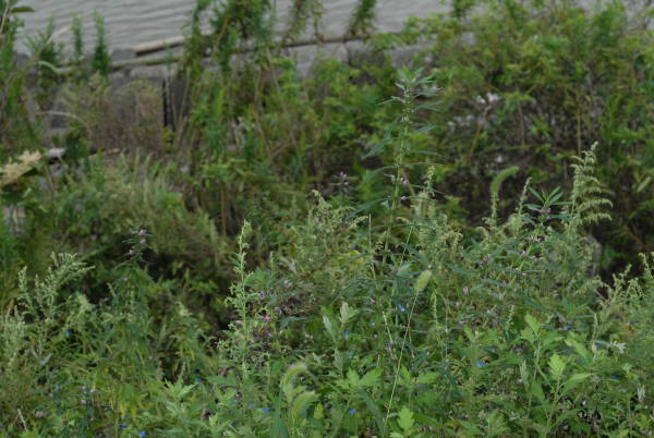堤防から民家を見下ろし、ふと後ろを見るとそこにメハジキの花があった。