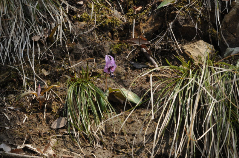 中腹くらいでまた雪が少なくなりカタクリがちらほら咲いている。