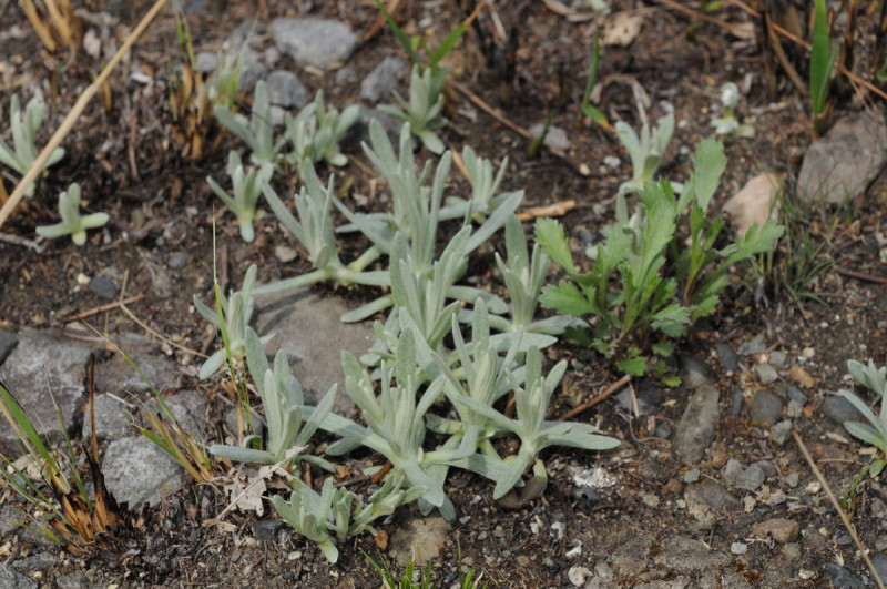 カワラハハコらしき葉やオトコヨモギのような葉がある。