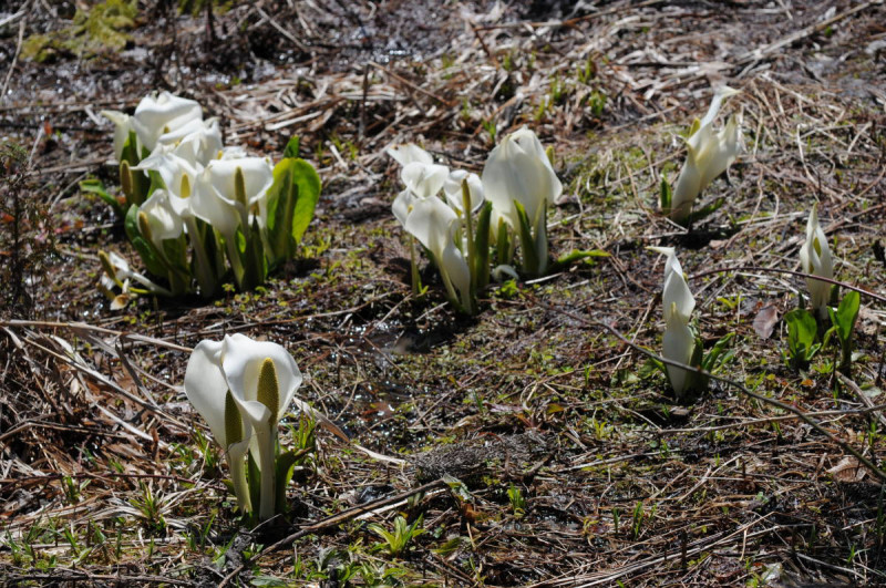 途中アキタブキやミズバショウの葉を撮影した。