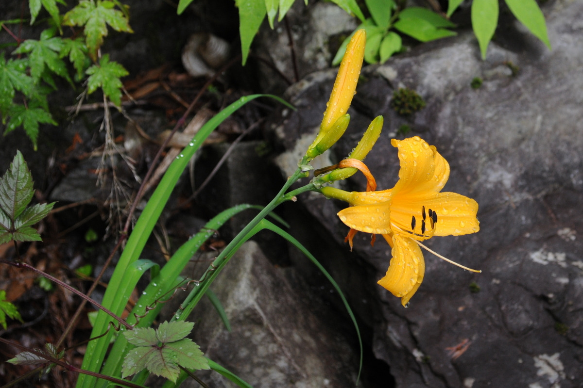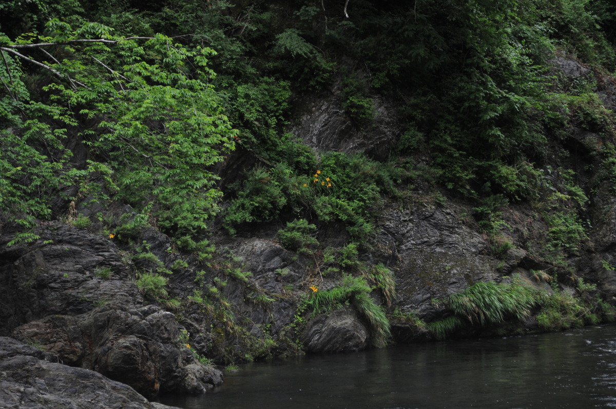 対岸の崖にも何ヶ所かゼンテイカが咲いている。