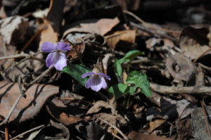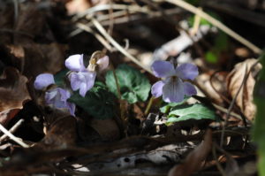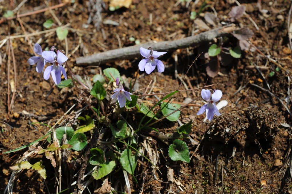 登山道の脇の斜面にタチツボスミレが咲いてる。
