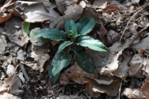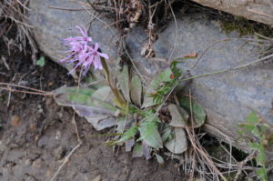 鞍掛山を越えて車道を渡った先の階段で、あっけなく1株のショウジョウバカマを見