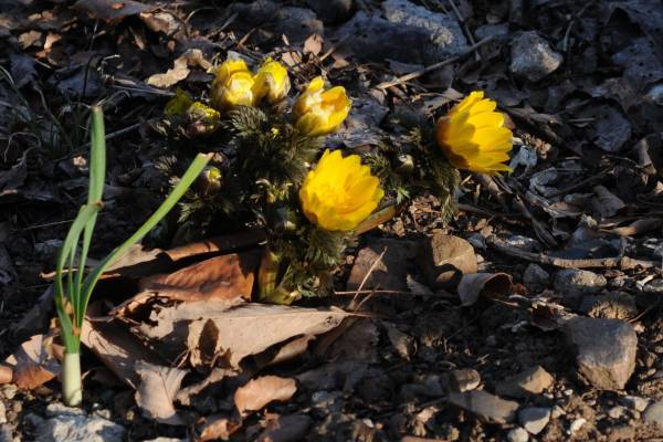 去年秩父で撮ったフクジュソウの写真はかなりピンボケの一枚だけだったので、ちゃんとした写真を撮りたくて、栃木県のみかも山公園に行ってみた。