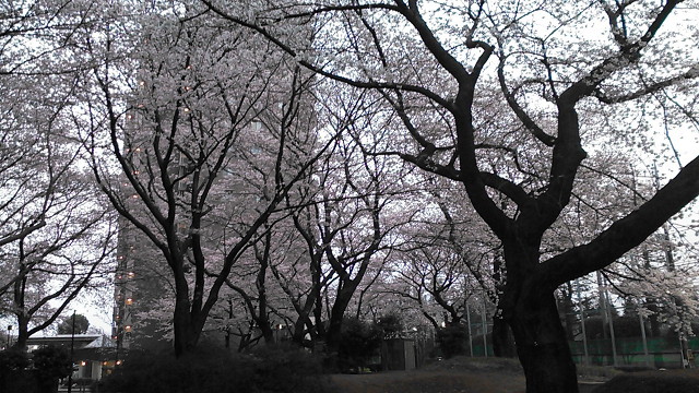 花見4月2日妻と近所の公園に花見に行った。夕方頃から、お弁当を持って自転車で出かけた。 公園につくと桜は8部目くらいで見頃だった。天気がが悪く寒い中で、ベンチでお弁当を広げて食べた。それからフリスビーをして、最後に写真を撮った。帰ろうとすると自転車の鍵が壊れて開かないので置いて帰った。工具を持って戻りワイヤーを切って鍵をはずした。 |
