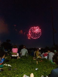 市川花火大会8月7日先週の浦安に続いて今週は市川の花火大会に行った。 暑い中、早めに河川敷に行き、シートで場所を取ってから駅の方にもどり、ケンタッキーや、たこやきなどを買ってドトールで一服してからまた河川敷へ。 花火はやはり浦安とは規模が違う。 花火の後はミスドで休んでから帰った。 |