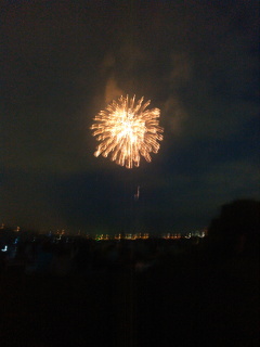 浦安花火7月30日OKショップですしと焼き鳥、ワインを買い込み公園でシートをしいて花火を見た。 真正面にきれいに見えた。 |