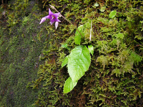 2005-08-16 東京都奥多摩 渓谷の岸壁に咲くイワタバコの花