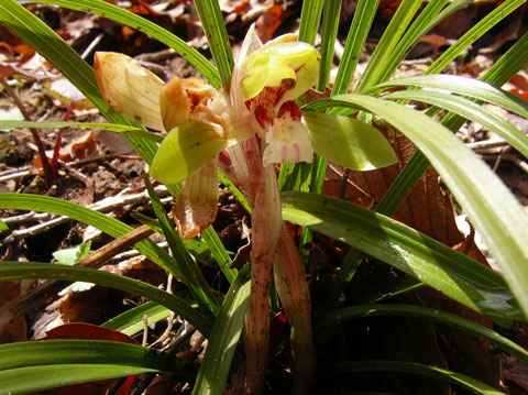 ラン科の中では普通に見られる。山地の林内に生息する。 花は地味で目立たない。