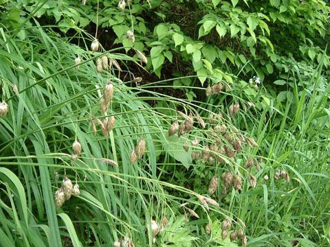 2004-05-19 最上川 川岸の斜面から垂れ下がるタヌキランの穂