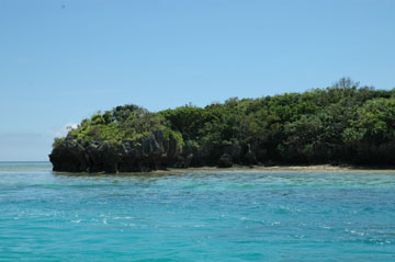 | レンタカーのマーチで北へ向かい川平湾に到着。 グラスボートに乗り海中の珊瑚や熱帯魚を見た。 |