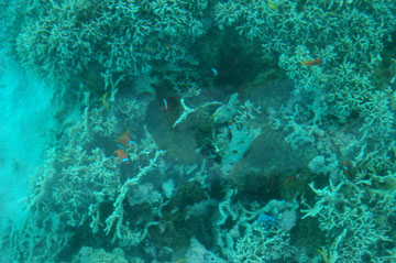 | 川平湾から東へ車を走らせ米原ビーチへ到着。 水着に着替えシュノーケルを付けて海に入った。 沖の方に珊瑚があると聞いていたのでゴムボートをふくらませて沖にでようとするもなかなか進まない。 仕方なく波打ち際のあたりで行ったり来たりしていた。 石垣島を一周するためあまりのんびりしていられないので車に戻りさらに東へ向かった。 |